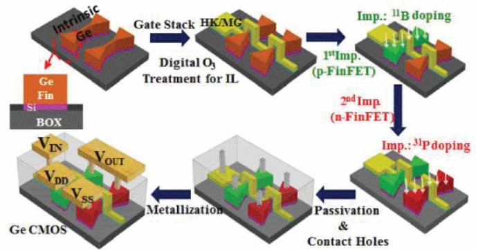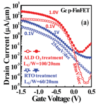 제목부터 보면 Si(실리콘)과 14족, 동족이며 다음 주기의 Germanium(게르마늄, 저마늄)을 채널(Channel)물질로 대신 사용해 높은 mobility의 특성을 가져왔고 공정 상에 문제가 됐던 표면 불량(Surface roughness)를 오존(O3) 처리한 ALD 공정을 이용해 개선했다고 하네요.