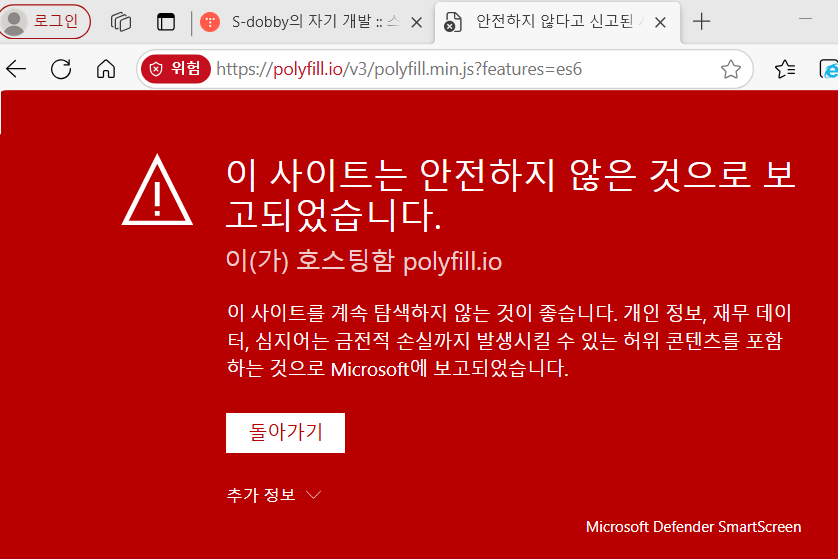 위와 같이 "안전하지 않다고 신고된.." 무시무시한..(?)