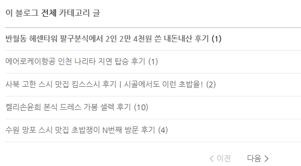제 네이버 블로그의 경우 위 번호들을 누르면
