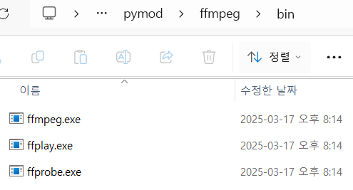 C:\pymod\ffmpeg\bin로 저장했습니다.