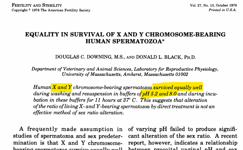 X 염색체 정자가 (pH 무관) 생존력이 높고